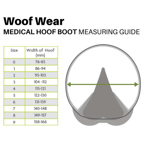 Meet de breedte van de hoef zorgvuldig op, de hoefschoen moet goed aansluitend passen!